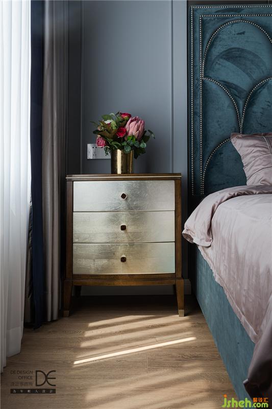 女兒房用藍(lán)灰和粉色打造,潔凈明亮;絲絨床背輔以金屬擺件,精致乖巧。已經(jīng)畢業(yè)的女兒悄悄長(zhǎng)成了大姑娘,所以床頭的妝臺(tái)設(shè)計(jì)必不可少;花瓣造型的吊燈,輔之玻璃材質(zhì)的通透,柔美而浪漫。