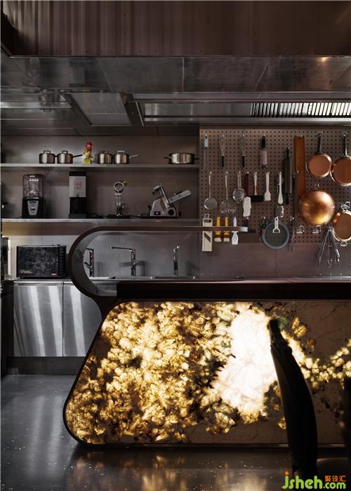 為了和用餐區(qū)整體的環(huán)境相得益彰,保溫?zé)舨捎媒饘倬W(wǎng)藏光的設(shè)計手法,不僅兼顧了實用與美觀,在材質(zhì)和造型上與整個開放式廚房區(qū)相呼應(yīng),并散發(fā)出柔和均勻的燈光,可以使食材本原的面貌和烹飪的過程更能被客人清晰地觀賞到。