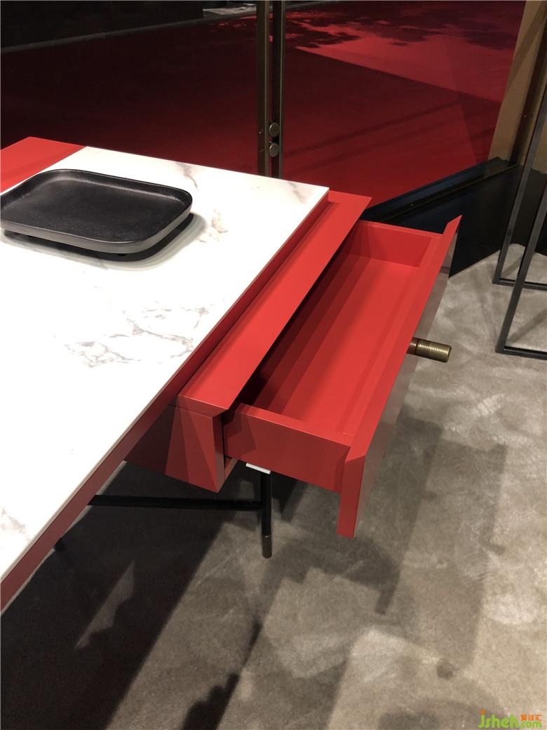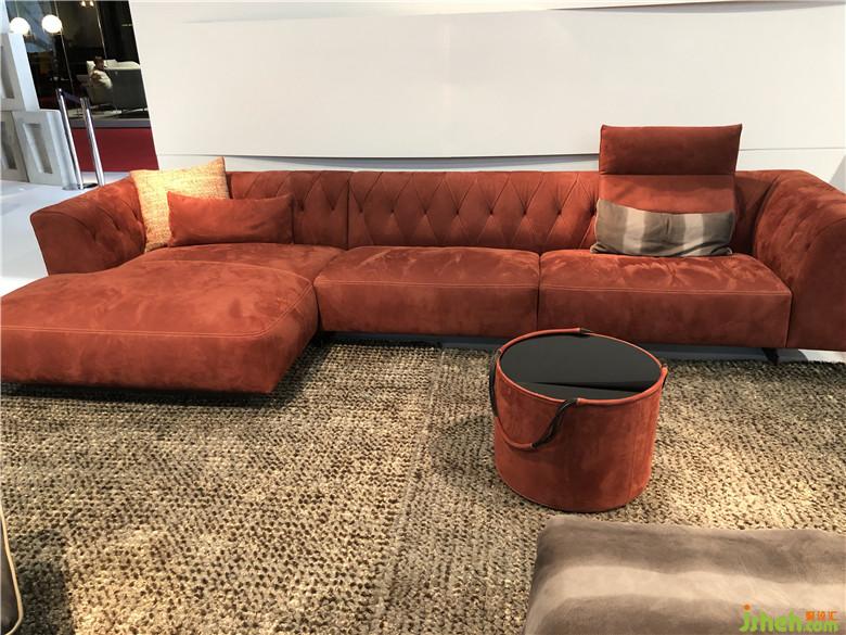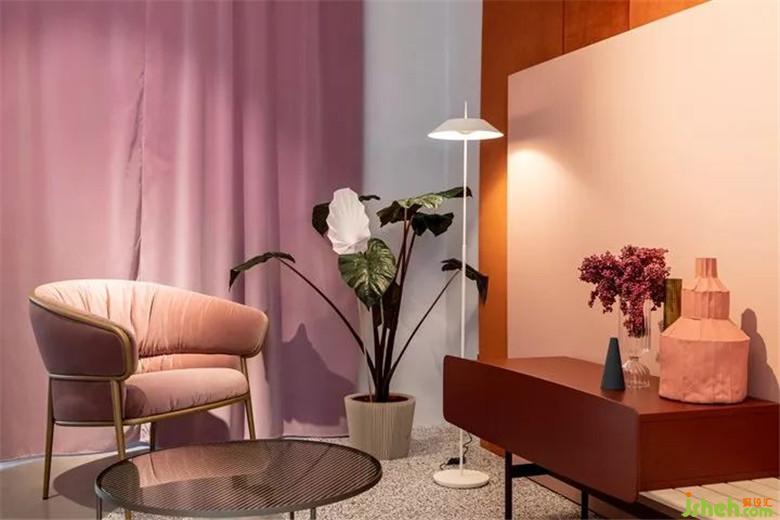 這是一個(gè)色彩風(fēng)向標(biāo),往展館里隨處一望,沙發(fā)、座椅、背景墻、柜子、抽屜、吧臺(tái),間或被珊瑚橙色和紅色占領(lǐng),豐富多彩的繽紛色系也讓整個(gè)展館棄滿了生機(jī)勃勃的景象。