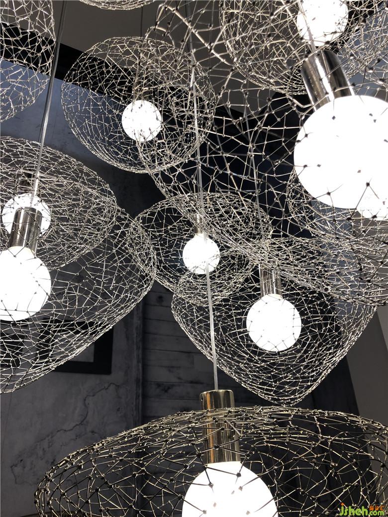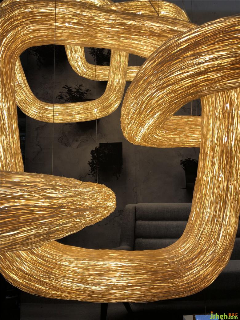 燈具更講究美學(xué)概念,它不僅作用于照明,還可以裝點(diǎn)生活空間。燈具造型色彩絢麗,線性、塊面、金屬與皮料、金屬與木和自然材質(zhì)的結(jié)合剛?cè)岵?jì),吊燈的款式頗為多樣,營造出霓虹般的浪漫景致,集趣味性和功能性于一體,體現(xiàn)出可持續(xù)性、以人為本的美學(xué)特質(zhì)。