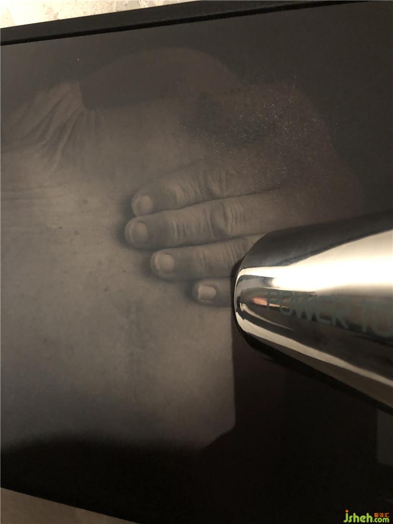 這是主題為“曝光”(Come To Light)入口處場(chǎng)景,墻上掛著幾塊黑屏板,當(dāng)用吹機(jī)風(fēng)吹向它時(shí),會(huì)出現(xiàn)一些人體的圖案,就像是為了滿足人們窺私欲而被人挖掘出來。