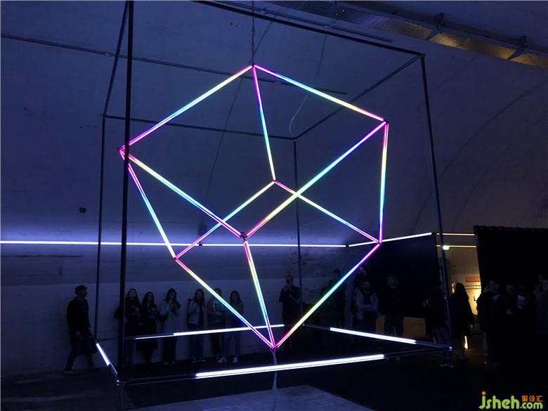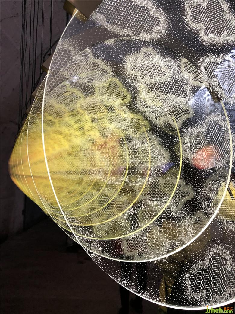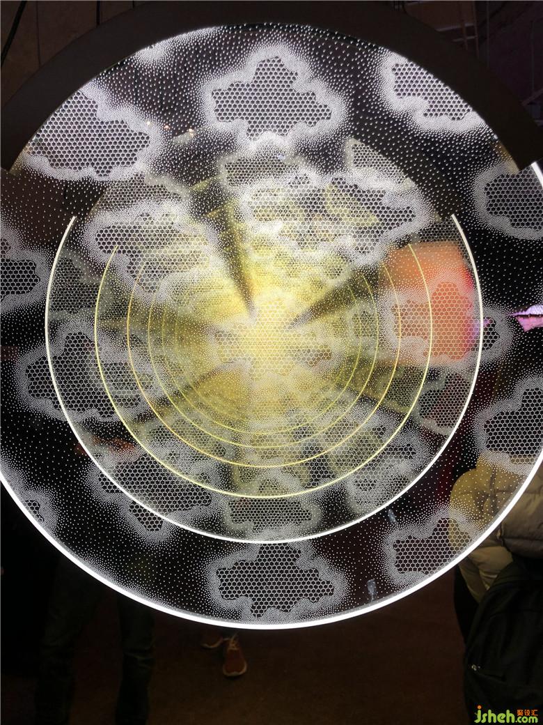 主題空間場(chǎng)景“曝光”,是一組由薄圓柱組成的發(fā)光裝置。將多根圓柱在空間中組合成一個(gè)形體,每根薄圓柱上都有幾種色彩,場(chǎng)景的主題隨著色彩和音樂的轉(zhuǎn)變而切換,空間與物體的對(duì)應(yīng)關(guān)系也隨著光線的轉(zhuǎn)變而切換,整個(gè)設(shè)計(jì)把聲和光完美結(jié)合。