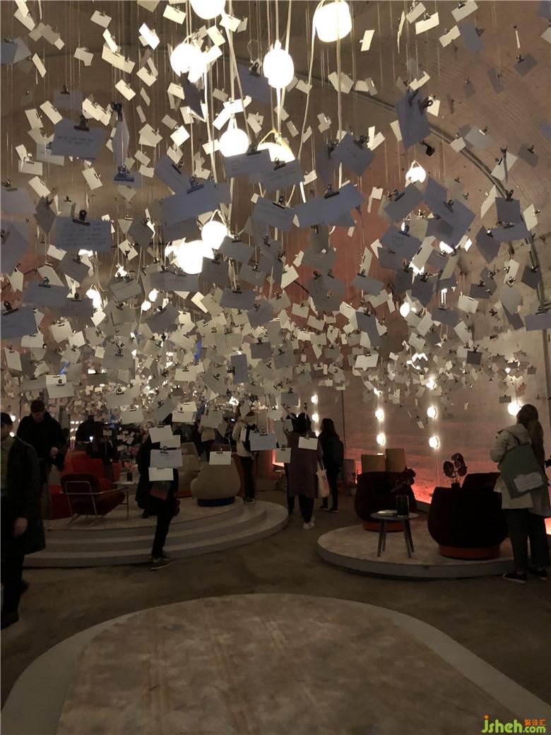 展覽“ 告訴我更多”(Tell me more)是一件沉浸式互動(dòng)裝置。這個(gè)設(shè)計(jì)意在探討把人與人之間相互連結(jié)在一起的情感。參展者都可以加入,每個(gè)參與者首先會(huì)來到一個(gè)被透明薄紗包圍的圓柱形小空間,任意回答此前陌生人提出的一個(gè)問題,并且用筆在空白卡片上寫下自己想問的問題,留給接下來的參與者回答。之后,大家可以到另外的休息室和身邊的人閑談,參與者們都將在這里獲得一場(chǎng)沒有束縛的思想交流。