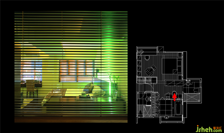 在衛(wèi)生間用較為溫柔的燈,使得整個(gè)空間變得柔和、舒適起來。但無論是在臥室亦或是衛(wèi)生間的燈光都是偏光鮮明亮中帶點(diǎn)恰到好處的綠色,大致色彩和整個(gè)家仍然是配套的,凸顯家的整體性,也使家變得鮮活起來。洪老師分析案例的時(shí)候始終強(qiáng)調(diào),射燈的作用以及它的出現(xiàn)都是有目標(biāo)的,一定是為了突顯某一種物體和美。