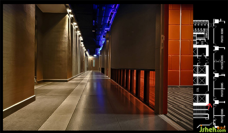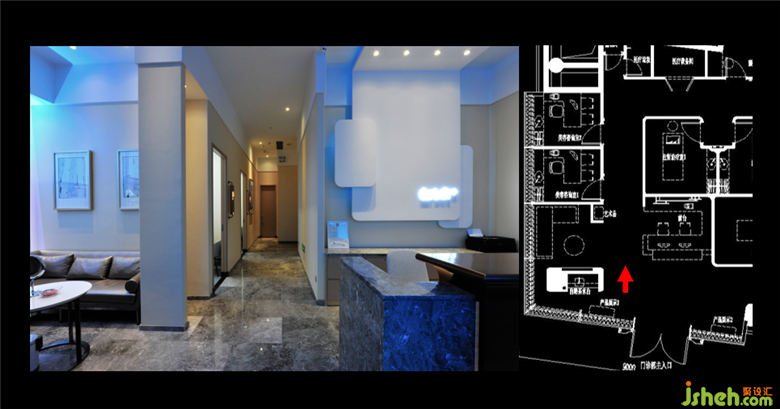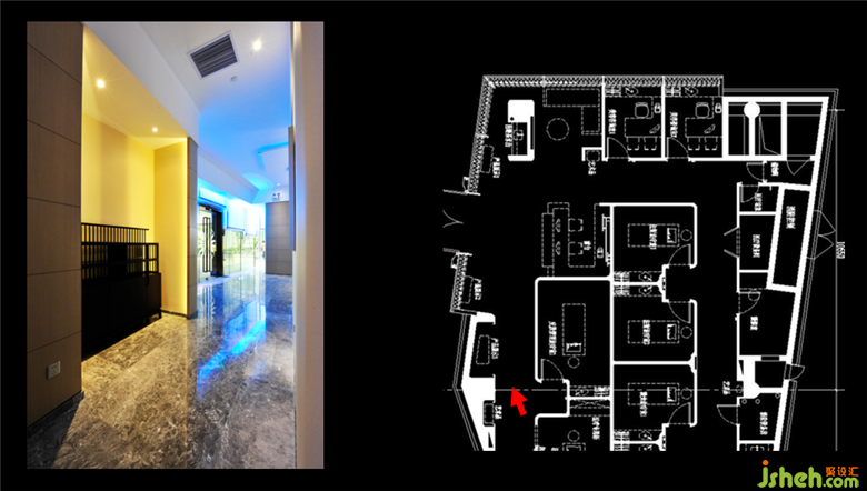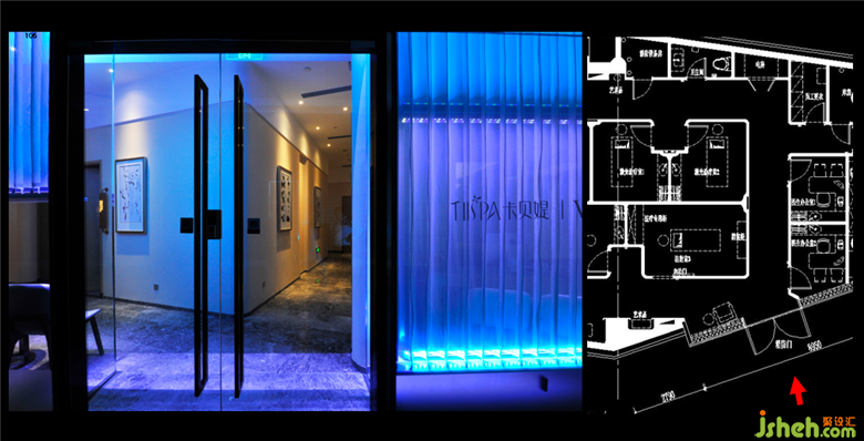 洪老師運(yùn)用商業(yè)案例的美容院給我們講述,在商業(yè)區(qū)域內(nèi),可以大膽的去運(yùn)用較為鮮艷的顏色,造成視覺上的沖擊感。美容院的案例大幅度的運(yùn)用了藍(lán)白色調(diào)的燈光,洪老師試圖用藍(lán)白燈光去打造一種深海的氛圍,給人干凈整潔的舒適感,讓客人愿意到這個(gè)潔凈的地方來消費(fèi)。藏在玻璃窗內(nèi)的紗簾里面有大量的藍(lán)色和白色燈光,走廊用的是較為暖暗的射燈,這樣是為了更好的突出藍(lán)白燈的美感。美容院的內(nèi)部也盡量用藍(lán)白調(diào)的燈光,椅子上的射燈是白色的,能夠更好的和藍(lán)色光線融合,充分體現(xiàn)整體性。在這個(gè)項(xiàng)目內(nèi)洪老師再次和設(shè)計(jì)師學(xué)者強(qiáng)調(diào),“每一個(gè)射燈的每一次出現(xiàn),都是有目標(biāo)的”,讓我也記憶猶新。