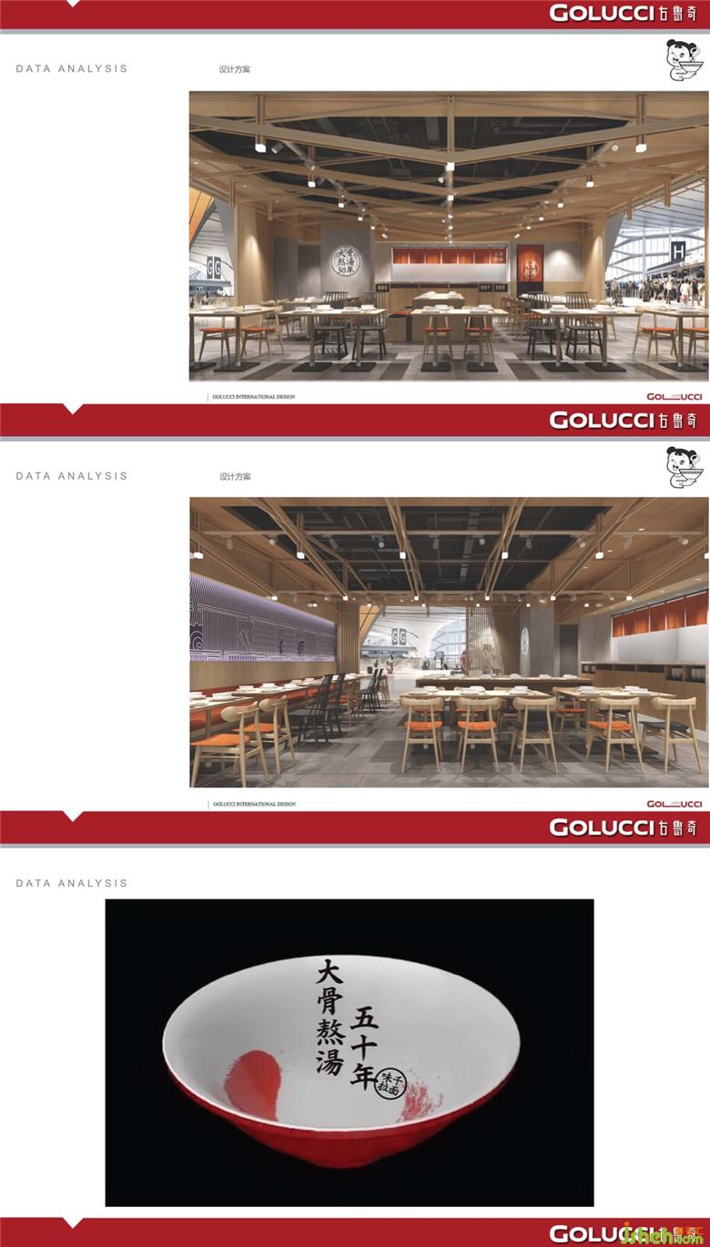 利旭恒老師的餐飲案例大多都會確定一個主題,再開展設計的后續(xù)工作。在味千拉面的主題設定上,利老師從核心價值出發(fā),圍繞專業(yè)、經(jīng)典和健康三大板塊做設計,基本概念是透過日本鳥居的手法,抽象的將餐廳空間打造成日本住宅的室內(nèi)與室外走廊關(guān)系。并將夾起拉面效果二維化的手法融入到餐廳空間當中,保留日本名店、50年老湯、大骨熬湯,鮮美健康。并且從客戶群體的角度去思考“什么人喜歡吃一碗地道好湯的日本拉面”,注重對品質(zhì)的高要求、熱愛日本文化、健康養(yǎng)生等,打造一個溫暖、輕松、富有文化韻味、精致的面館。看到這些健康,既符合餐飲品牌的形象,也迎合現(xiàn)代客戶的口味。