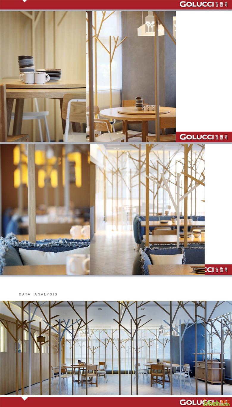 這是一個(gè)現(xiàn)代年輕餐廳的案例分享,餐廳設(shè)計(jì)餐吧的主人來(lái)自湖南,在京奮斗10年,本想在今年收拾行囊衣錦還鄉(xiāng),卻因緣際會(huì)下開創(chuàng)了一個(gè)新餐飲品牌。也因此打消了還鄉(xiāng)的念頭,決定在北京邁向第二個(gè)10年,同時(shí)在北京CBD這個(gè)讓所有人瘋狂的地方,打造一個(gè)有媽媽的味道的溫馨角落”雁舍”。所以利老師在做設(shè)計(jì)的時(shí)候讓餐吧空間以雁巢為概念的來(lái)源,餐廳設(shè)計(jì)樹林與鳥屋兩個(gè)主題簡(jiǎn)約樸實(shí)的手法虛實(shí)表現(xiàn)在空間之中: 虛:大量抽象化的樹枝形成了一片樹林,分割了幾個(gè)用餐區(qū)域,讓人們有身處都市叢林用餐感受。實(shí):在所有的實(shí)體墻面開出鳥屋形狀的樹洞,餐廳設(shè)計(jì)食客以鳥的視角透過(guò)這些鳥屋樹洞看到樹林,這會(huì)是一種特別的體驗(yàn),餐廳設(shè)計(jì)有些鳥屋樹洞則組成為書架。餐吧整體基調(diào)有著當(dāng)代北歐設(shè)計(jì)的簡(jiǎn)約與樸實(shí),這樣的環(huán)境使人覺(jué)得是個(gè)咖啡西餐吧,實(shí)際上這里賣的卻是在家常不過(guò)的中國(guó)湖南家庭料理,意味著這里的飯菜有家的味道,餐廳設(shè)計(jì)師希望藉由餐廳環(huán)境隱約透露出的北歐福利國(guó)度的安全感,在配有著媽媽飯菜香的家常不過(guò)美食,讓在北京CBD精神緊張的人們放松。北京CBD每年來(lái)自各地的人們就如成群的大雁來(lái)此棲息,餐廳設(shè)計(jì)北京CBD這個(gè)讓所有人帶著夢(mèng)想而來(lái)的地方,故鄉(xiāng)家的味道正如它的名字”雁舍”一樣。