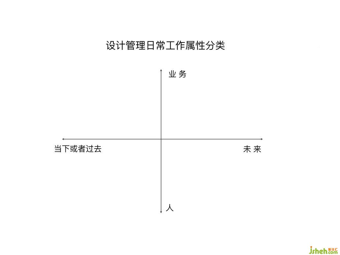 這個(gè)是我做的關(guān)于一個(gè)設(shè)計(jì)公司管理者的日常工作屬性分類。為什么大家現(xiàn)在會(huì)對(duì)未來充滿迷茫和焦慮,是因?yàn)槲覀冏鳛楣窘?jīng)營者把更多的精力放在了過去和當(dāng)下,而沒有立足于未來去做布局。