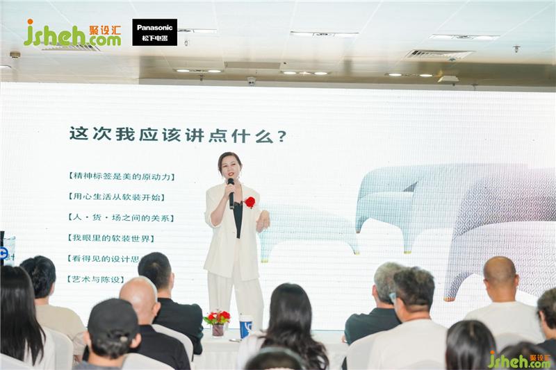 接著向菲老師提到了軟裝與藝術(shù)的關(guān)系,闡明自己的觀點(diǎn):軟裝不等于藝術(shù),藝術(shù)是一個(gè)自我的過(guò)程藝術(shù)家的創(chuàng)作可以是獨(dú)立的,不和他人發(fā)生任何關(guān)系,但是設(shè)計(jì)是一個(gè)服務(wù)他人需求的過(guò)程。隨后向菲老師提到軟裝的載體:軟裝設(shè)計(jì)、軟裝服務(wù)、軟裝產(chǎn)品,分享了軟裝搭配的三大法則:主次、平衡、構(gòu)圖,向菲老師認(rèn)為軟裝設(shè)計(jì)中的人緯度越寬,受眾越廣,維度越深,受眾越聚焦。