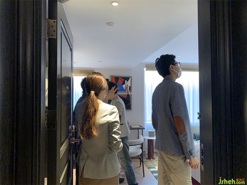 設(shè)計(jì)師黃全以Art Deco風(fēng)格重新演繹百年公寓的風(fēng)采,修繕與改建了這座黑石M+酒店,融入這個(gè)被藝術(shù)深深浸潤(rùn)的街區(qū)。因?yàn)樵O(shè)計(jì)師人數(shù)過(guò)多,我們分三批逐步參觀,在黑石這片新潮里,我們領(lǐng)略老上海的歷史魅力與設(shè)計(jì)的非凡格調(diào),享受多種材質(zhì)碰撞地視覺(jué)沖擊。