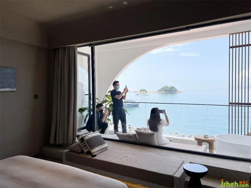 第一站來到了大鵬海灣上的楹諾小半灣。目之所及的波浪溫柔起伏,微風(fēng)帶著海鹽味輕撫過臉龐,仿佛被大海擁抱。跟著主案設(shè)計(jì)文志剛Josh的腳步,領(lǐng)略遠(yuǎn)離世俗的休閑場(chǎng)域。