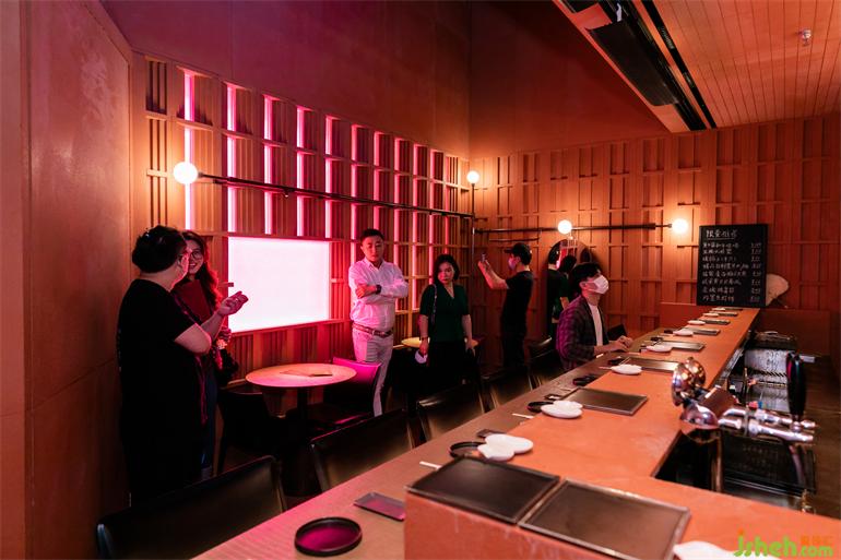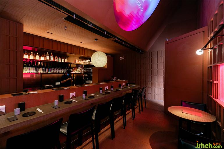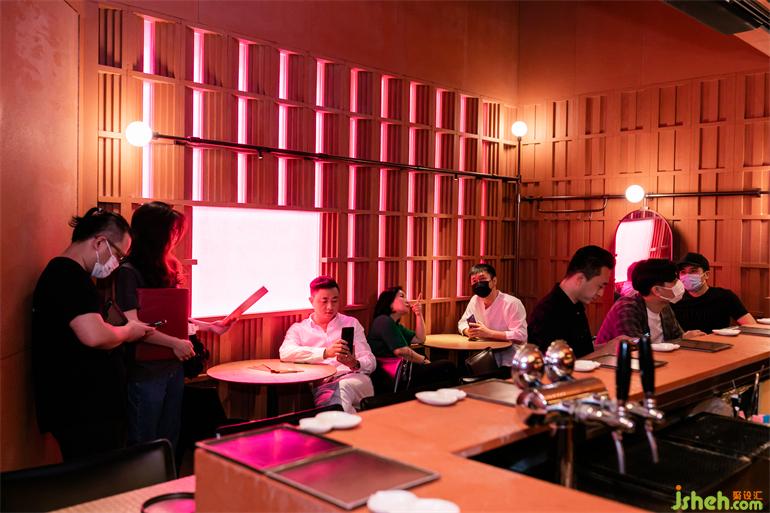 天上的云遲遲不徹底暗下來,始終看不到夜里的景象。餐廳內(nèi)部結(jié)構(gòu)與設(shè)備,使人覺得想象力正是要此刻發(fā)力,餐位之間緊湊,拉近了人與人之間的物理距離,水磨石表面接近自然的陶土色,散出親和感。餐廳內(nèi)所有的燈的光幾乎都是暈開的暗紅色,輕輕柔柔,仿佛在這餐廳里的每一夜都能等來莎士比亞光顧。