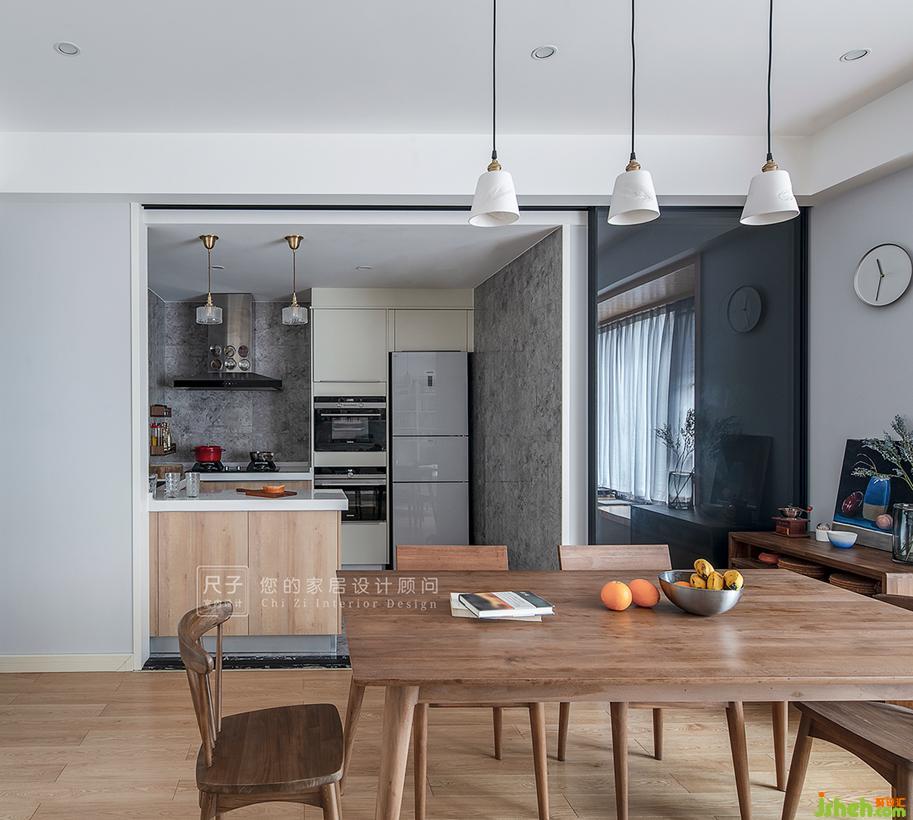 開(kāi)放式的廚房,櫥柜是不能少的,櫥柜里存放日常廚房用品,櫥柜上方放置小型綠植、裝飾畫(huà)或者小擺件等,拿取方便,同時(shí)又能美化空間。櫥柜旁貼一豎條的黑板壁紙,黑板壁紙非常靈活好用,下面擺放書(shū)桌,在廚房也可設(shè)置休閑的學(xué)習(xí)區(qū)。設(shè)計(jì)公司