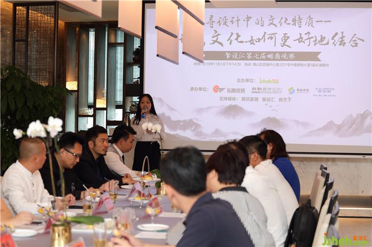 2018年11月1日下午三時,聚設(shè)匯裝修平臺于南山區(qū)后海中心路3331號中建建鋼構(gòu)大廈5層祈康膳坊舉辦了聚設(shè)匯第七屆《鵬鼎觀察》,本次鵬鼎觀察由聚設(shè)匯裝修平臺主辦,由東鵬陶瓷、家美樂(當(dāng)代和科勒)、舒怡機(jī)電、A.O.史密斯品牌聯(lián)合直供平臺共同承辦,活動同時得到了騰訊家居、房天下的支持。