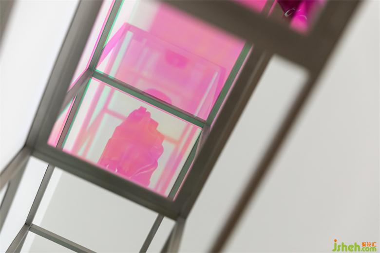 空間跳躍出斑斕的的藝術(shù)品擱架,江景大宅設(shè)計其中的趣味隨即展現(xiàn)。跳脫色彩的引入,體塊、線條、造型的運用,攜帶著光和影,在此間自由穿梭,生活的意趣就此彌散在臥室的每一個角落。