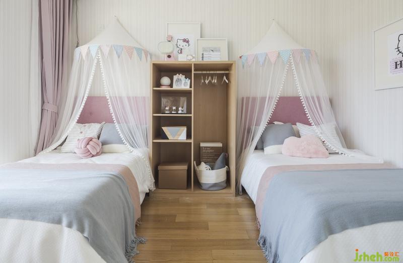 臥室的布置,設(shè)計(jì)師以素雅恬淡的配色做為房間的基調(diào),而床則作為房間的主題則根據(jù)孩子們的不同喜好來設(shè)置,或夢幻可愛的童話模樣,或炫酷有趣的汽車模型,好好睡覺也能變成一件快樂簡單的事。