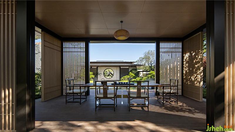 “水榭宜時(shí)陟,山樓向晚看”,亭臺水榭隱逸著清雅,隔水矗立的親水涼亭以形造境,儒道并蓄,動靜相蘊(yùn),于空間中孕育出禪意之風(fēng),掩映在盎然的綠意中,伴隨著茶香四溢,裊裊煙霧。來客以茶入詩,以茶抒懷,茶之三味,皆入情境之中,大抵沒有人不愛這般閑適安逸的日子。