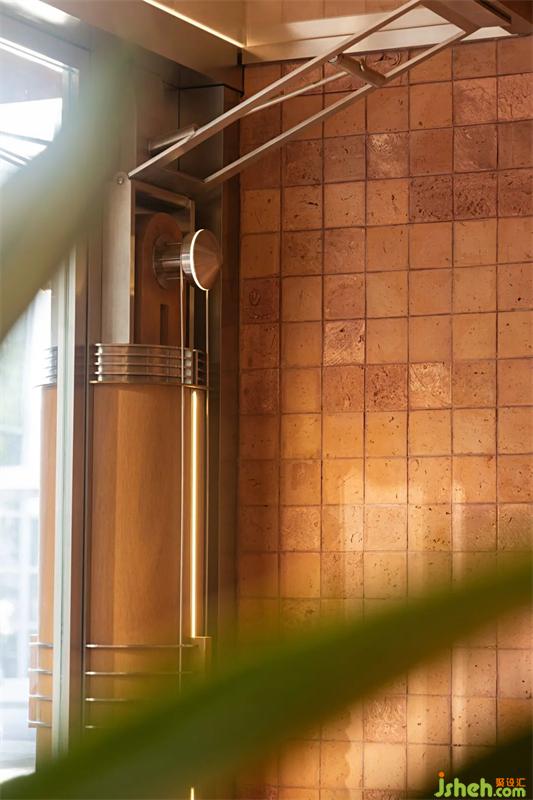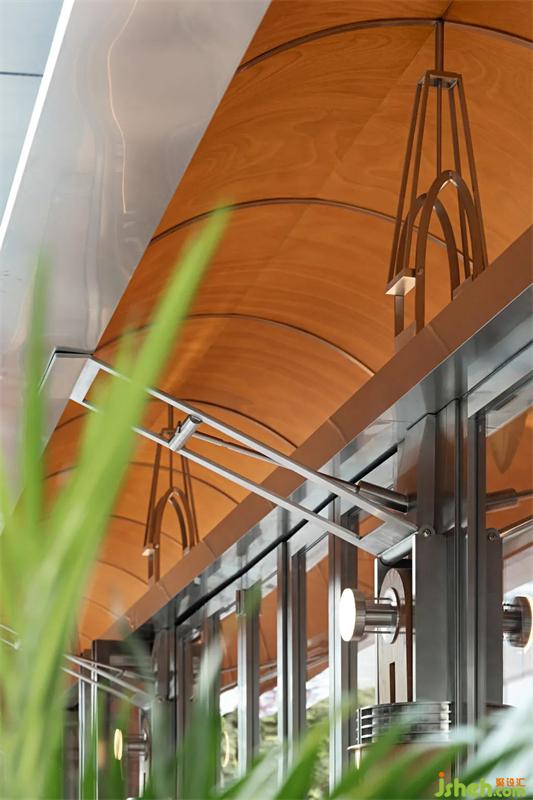 門頭構(gòu)造、燈具裝置是通過帆船支撐、揚帆、打開的一系列細(xì)節(jié)和過程組合而成的結(jié)構(gòu)裝置構(gòu)造的轉(zhuǎn)換,在金屬的包裹下,襯托綿延起伏的內(nèi)部空間,打造新鮮的質(zhì)感和記憶。