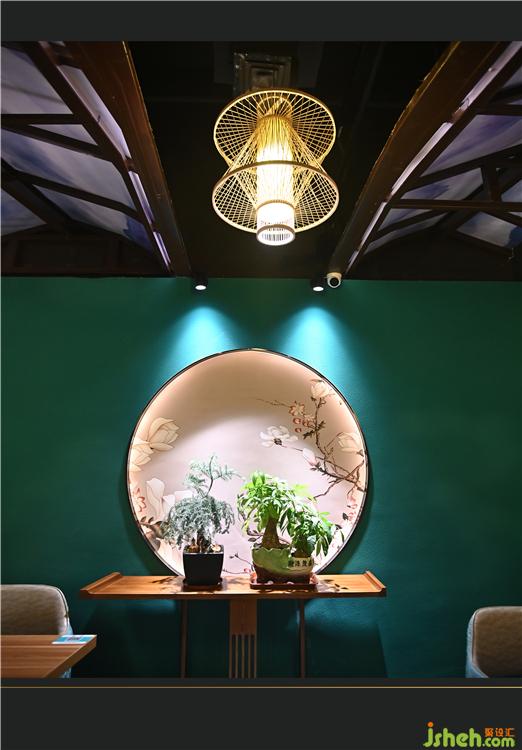 進門處古松與奇石相映成趣,一輪圓月與秀美山色交相輝映,美輪美奐,讓人心曠神怡,食客在進入餐廳之前,就能感受到南山翁希望傳達的“金樽一舉明月落”的古典曠達與詩意。