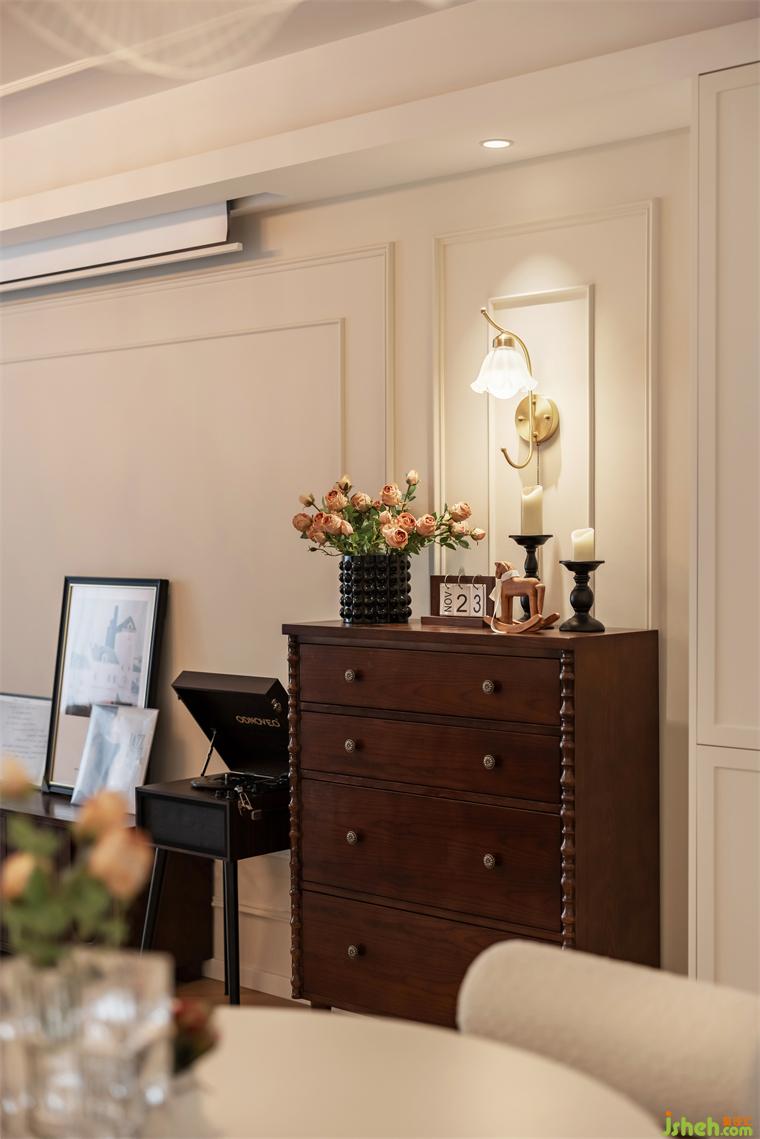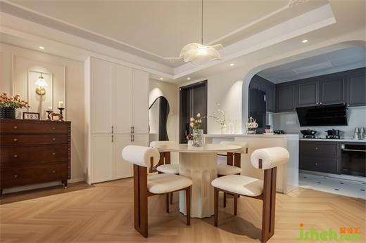 2.奶油白客廳通鋪人字拼木地板,墻面PU線搭配角花,弧形線面貫穿全屋,柔化空間氛圍,共同鋪貼法式風(fēng)的優(yōu)雅與浪漫。陽臺(tái)打通后,客廳不僅擁有了充沛采光,同時(shí)坐享絕佳的觀光視野,大落地窗搭配平拱門,讓這一隅成為屋主疲乏一天后自我放松的休閑小角落,養(yǎng)花種草、曬太陽、喝下午茶,是隨手都可以拍出雜志大片的程度。