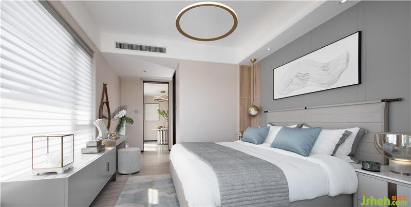 季悅之居為三室兩廳兩衛(wèi)的疊拼戶型,整體面積為142平方米??臻g主色調(diào)為淺灰色,微妙的灰色變化,層層延伸,營(yíng)造緊密而又輕盈飄逸的變化。綠植、陽(yáng)光、窗外的風(fēng)景與室內(nèi)的空間,虛實(shí)相生,交融一體。樣板房設(shè)計(jì)