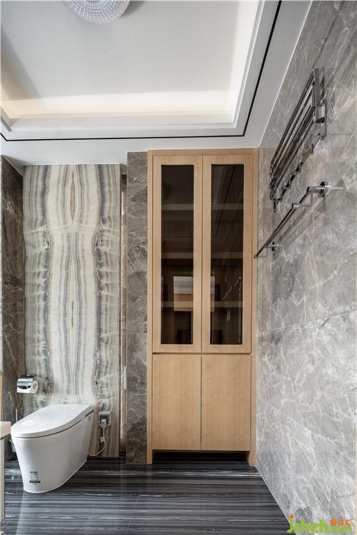 高級的表達是讓空間來定義情緒,主衛(wèi)在大理石冷冽的肌理襯托下,洗滌疲憊的身心,將生活里尋常事物與行為動機變得具有理性詩意,而不僅只是空間的單純使用者。