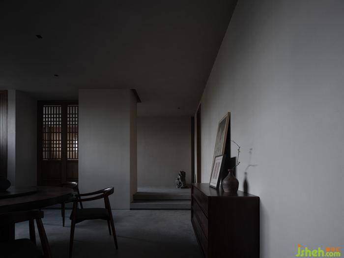 茶室會(huì)所設(shè)計(jì)沒(méi)有多過(guò)的裝飾布置,只有對(duì)光線合理的安排。夜幕降臨,燈光亮起,不僅吸引人在此處留下腳步,細(xì)觀景象,同時(shí)也隱喻這是一種可以掌控自我、建立秩序、對(duì)抗外界壓力的自信感。