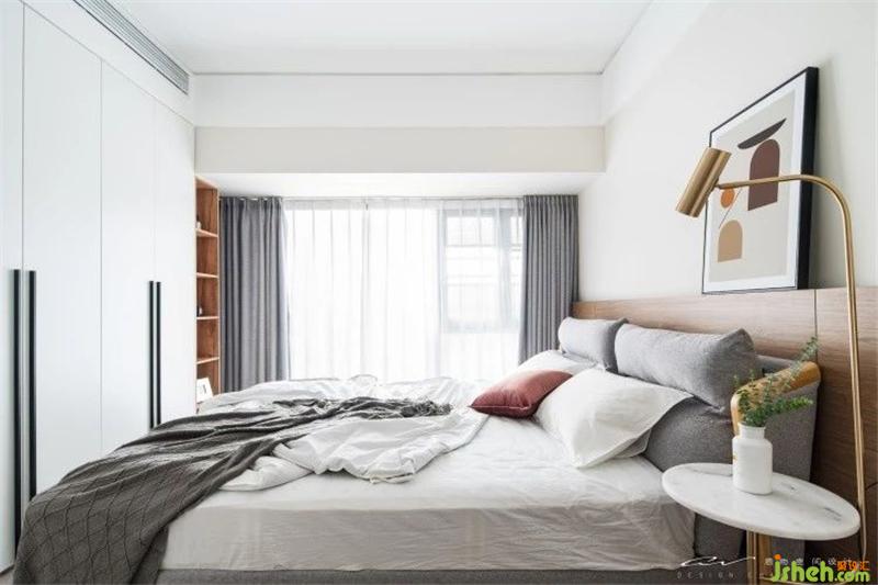 主臥的衣柜做足,窗下開放格收納小件物品。