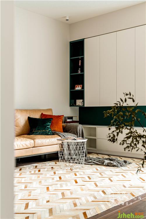 復(fù)古焦糖棕的雙人沙發(fā),愛(ài)馬仕橙的簡(jiǎn)約邊幾,暖棕拼接式牛皮毯,景觀效果極佳的鶴望蘭,室內(nèi)設(shè)計(jì)師和整個(gè)空間元素互相呼應(yīng)協(xié)調(diào)統(tǒng)一的裝飾掛畫(huà),每一處細(xì)節(jié)無(wú)不彰顯屋主的生活態(tài)度和品質(zhì)享受。
