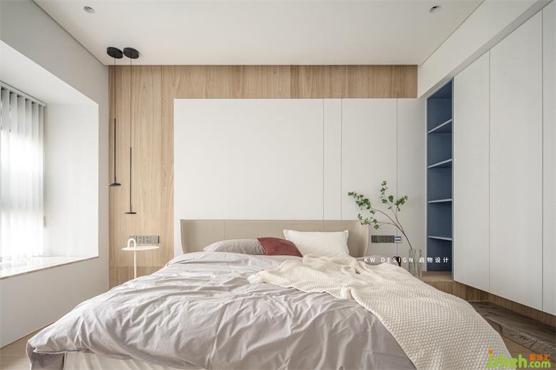 開放格和床邊柜的連貫設(shè)計,使空間更極簡和整體,視覺延續(xù)性更好。