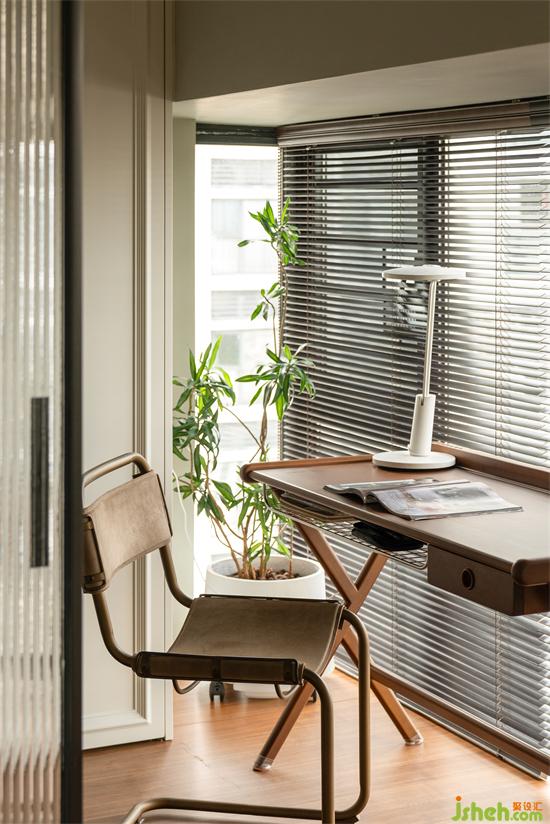 陽臺封窗拓寬休閑區(qū)域,棲游家園家裝設計利用結構凹位做洗衣伴侶。