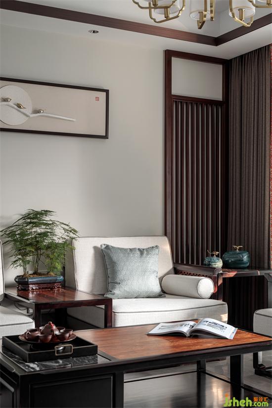 墻面、頂面線條方正,空間布局對稱平和,體現(xiàn)出儒家傳統(tǒng)思想中的“中庸之道”。家裝設計色彩搭配一深一淺,暗合道家“太極陰陽”之法。二者相得益彰,渾然一體。