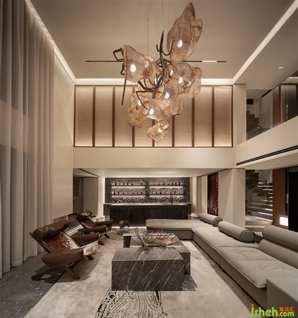 空間中融入中古風(fēng)家具,將其與現(xiàn)代風(fēng)格進(jìn)行時(shí)空交織,從時(shí)間、空間、風(fēng)格等方面詮釋野奢靈魂。自然肌理與現(xiàn)代材質(zhì)相互兼容,家與山野的完美結(jié)合,久居城市中央,面對(duì)一切當(dāng)下,走去或歸來(lái),天地間的廣闊在家這片原野無(wú)限展開(kāi)。