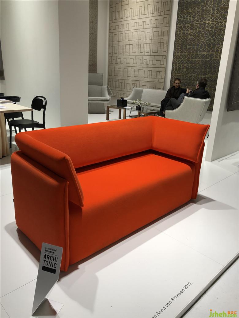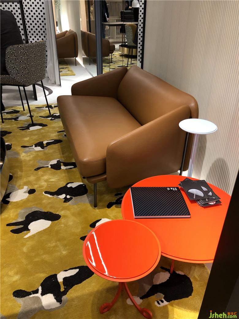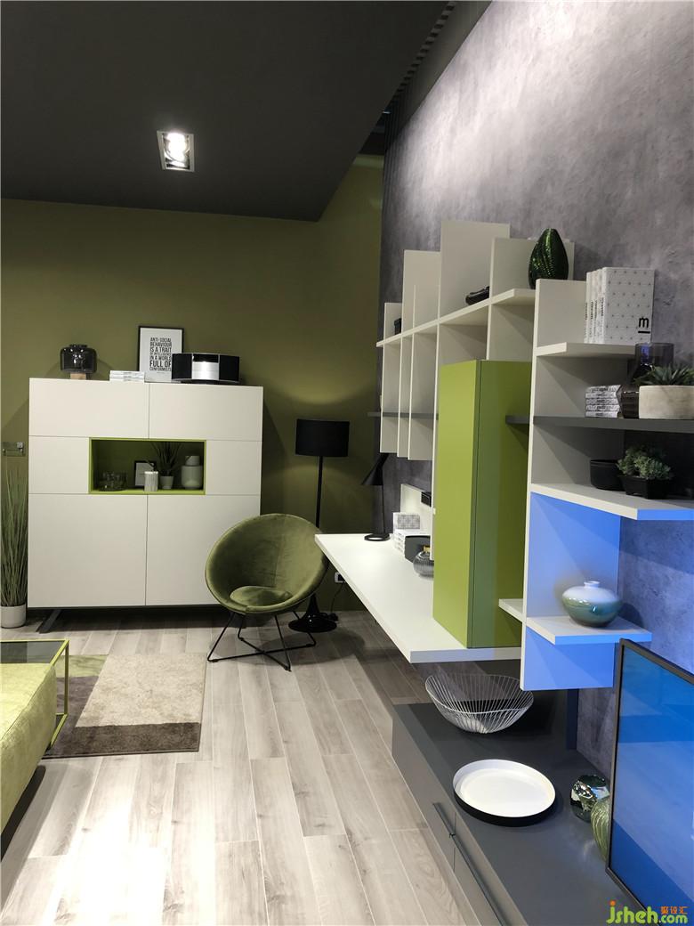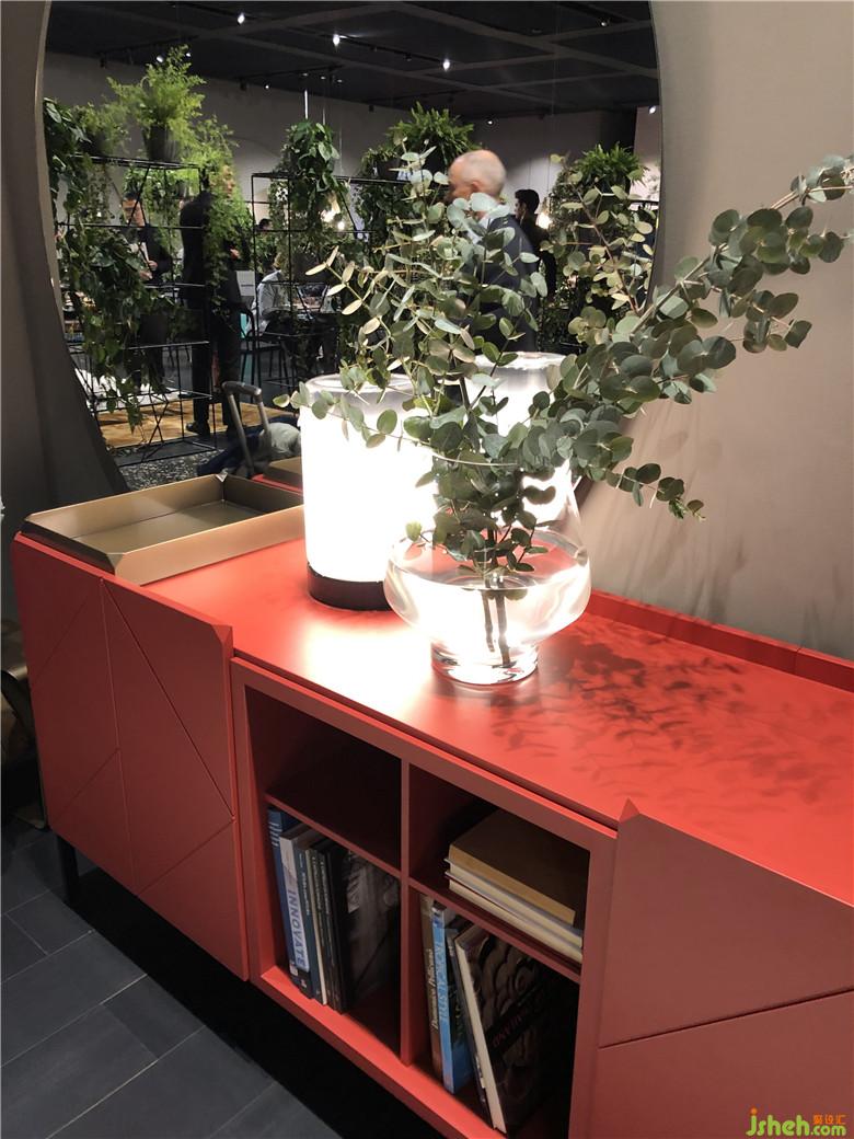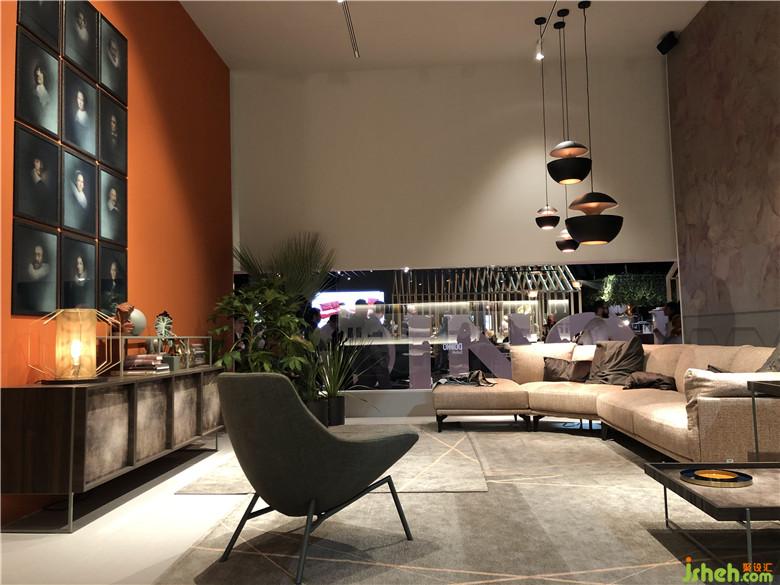 這是一個(gè)色彩風(fēng)向標(biāo),往展館里隨處一望,沙發(fā)、座椅、背景墻、柜子、抽屜、吧臺(tái),間或被珊瑚橙色和紅色占領(lǐng),豐富多彩的繽紛色系也讓整個(gè)展館棄滿了生機(jī)勃勃的景象。