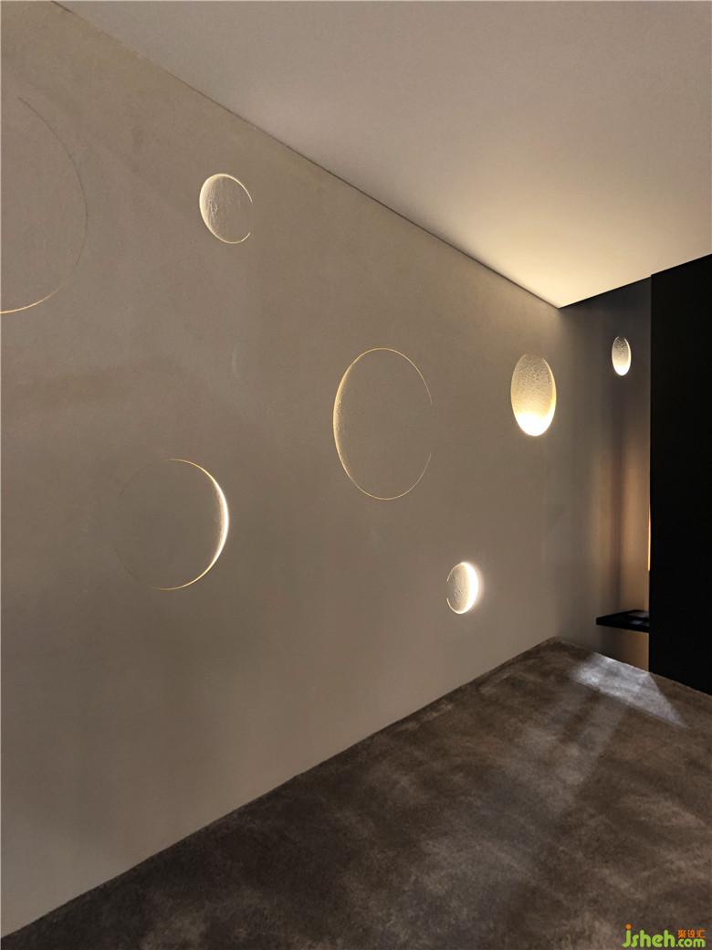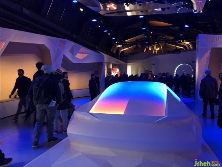 主題空間場(chǎng)景“曝光”,是一組由薄圓柱組成的發(fā)光裝置。將多根圓柱在空間中組合成一個(gè)形體,每根薄圓柱上都有幾種色彩,場(chǎng)景的主題隨著色彩和音樂的轉(zhuǎn)變而切換,空間與物體的對(duì)應(yīng)關(guān)系也隨著光線的轉(zhuǎn)變而切換,整個(gè)設(shè)計(jì)把聲和光完美結(jié)合。