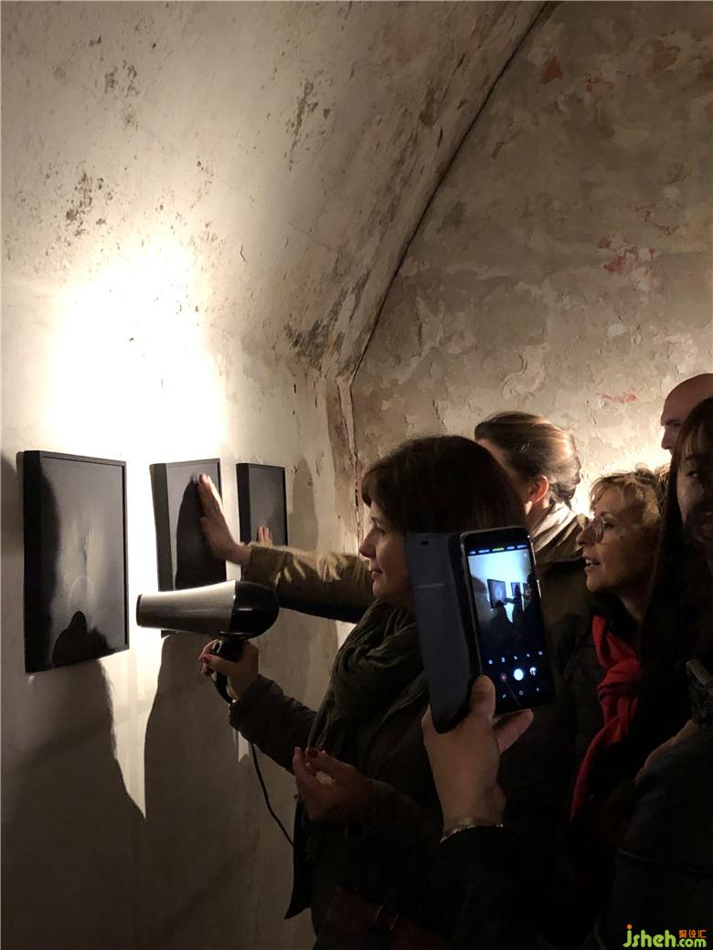 這是主題為“曝光”(Come To Light)入口處場(chǎng)景,墻上掛著幾塊黑屏板,當(dāng)用吹機(jī)風(fēng)吹向它時(shí),會(huì)出現(xiàn)一些人體的圖案,就像是為了滿足人們窺私欲而被人挖掘出來。