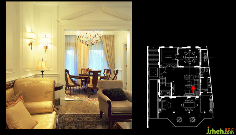 康樂園滌濤山的案例,洪老師在業(yè)主家里利用地面花紋配合射燈,而餐廳用了比較隆重的吊燈,更好的體現(xiàn)設(shè)計(jì)感。洪老師還提到近年來水晶燈的功能已經(jīng)開始發(fā)生變化,現(xiàn)在主要是起到了裝飾第一,光照第二的作用。并和我們演示了同一空間的不同燈光、燈光的開關(guān),都會(huì)使得整個(gè)空間的層次效果不同。而同一個(gè)燈光的線路也可以分開,造成不同的視覺效果。
