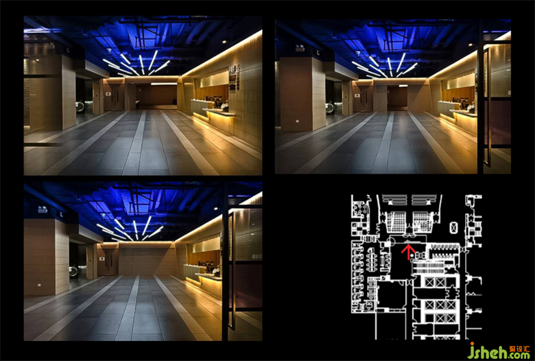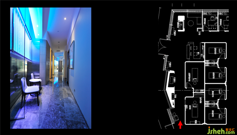 洪老師運(yùn)用商業(yè)案例的美容院給我們講述,在商業(yè)區(qū)域內(nèi),可以大膽的去運(yùn)用較為鮮艷的顏色,造成視覺上的沖擊感。美容院的案例大幅度的運(yùn)用了藍(lán)白色調(diào)的燈光,洪老師試圖用藍(lán)白燈光去打造一種深海的氛圍,給人干凈整潔的舒適感,讓客人愿意到這個(gè)潔凈的地方來消費(fèi)。藏在玻璃窗內(nèi)的紗簾里面有大量的藍(lán)色和白色燈光,走廊用的是較為暖暗的射燈,這樣是為了更好的突出藍(lán)白燈的美感。美容院的內(nèi)部也盡量用藍(lán)白調(diào)的燈光,椅子上的射燈是白色的,能夠更好的和藍(lán)色光線融合,充分體現(xiàn)整體性。在這個(gè)項(xiàng)目內(nèi)洪老師再次和設(shè)計(jì)師學(xué)者強(qiáng)調(diào),“每一個(gè)射燈的每一次出現(xiàn),都是有目標(biāo)的”,讓我也記憶猶新。