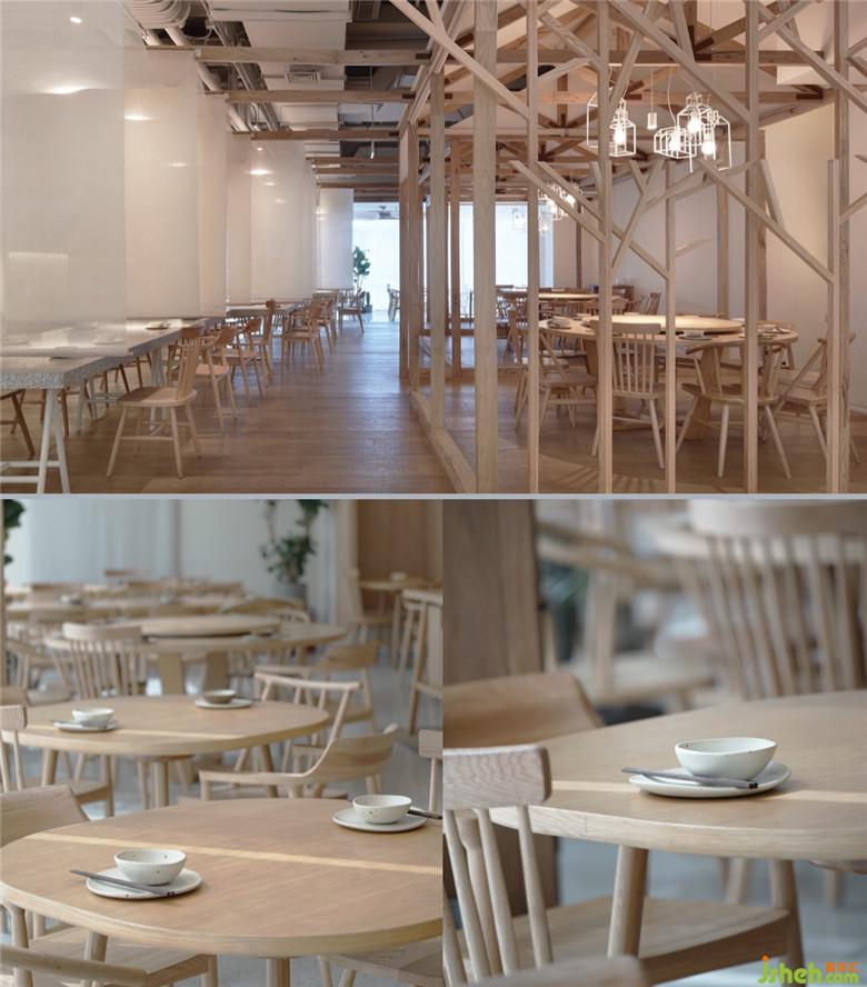 這是一個(gè)現(xiàn)代年輕餐廳的案例分享,餐廳設(shè)計(jì)餐吧的主人來(lái)自湖南,在京奮斗10年,本想在今年收拾行囊衣錦還鄉(xiāng),卻因緣際會(huì)下開創(chuàng)了一個(gè)新餐飲品牌。也因此打消了還鄉(xiāng)的念頭,決定在北京邁向第二個(gè)10年,同時(shí)在北京CBD這個(gè)讓所有人瘋狂的地方,打造一個(gè)有媽媽的味道的溫馨角落”雁舍”。所以利老師在做設(shè)計(jì)的時(shí)候讓餐吧空間以雁巢為概念的來(lái)源,餐廳設(shè)計(jì)樹林與鳥屋兩個(gè)主題簡(jiǎn)約樸實(shí)的手法虛實(shí)表現(xiàn)在空間之中: 虛:大量抽象化的樹枝形成了一片樹林,分割了幾個(gè)用餐區(qū)域,讓人們有身處都市叢林用餐感受。實(shí):在所有的實(shí)體墻面開出鳥屋形狀的樹洞,餐廳設(shè)計(jì)食客以鳥的視角透過(guò)這些鳥屋樹洞看到樹林,這會(huì)是一種特別的體驗(yàn),餐廳設(shè)計(jì)有些鳥屋樹洞則組成為書架。餐吧整體基調(diào)有著當(dāng)代北歐設(shè)計(jì)的簡(jiǎn)約與樸實(shí),這樣的環(huán)境使人覺(jué)得是個(gè)咖啡西餐吧,實(shí)際上這里賣的卻是在家常不過(guò)的中國(guó)湖南家庭料理,意味著這里的飯菜有家的味道,餐廳設(shè)計(jì)師希望藉由餐廳環(huán)境隱約透露出的北歐福利國(guó)度的安全感,在配有著媽媽飯菜香的家常不過(guò)美食,讓在北京CBD精神緊張的人們放松。北京CBD每年來(lái)自各地的人們就如成群的大雁來(lái)此棲息,餐廳設(shè)計(jì)北京CBD這個(gè)讓所有人帶著夢(mèng)想而來(lái)的地方,故鄉(xiāng)家的味道正如它的名字”雁舍”一樣。