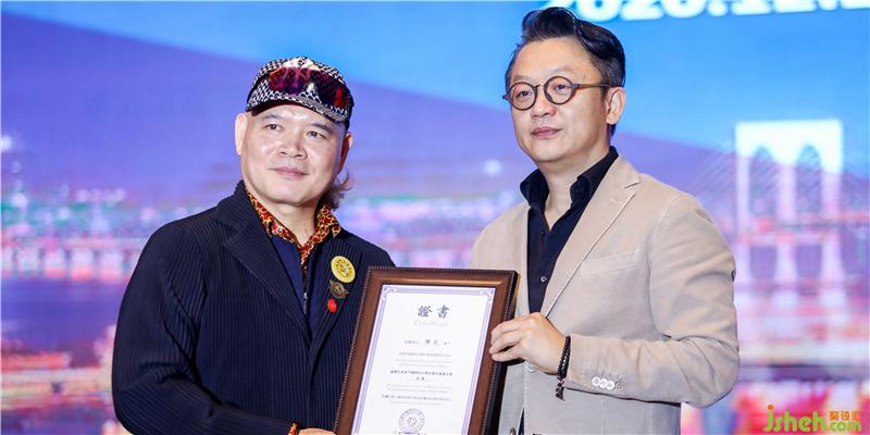 澳門國際設計聯(lián)合會會長兼理事長、澳門國際設計聯(lián)展組委會主席 符軍先生上臺為深圳新冶組設計創(chuàng)始人 陳武先生頒發(fā)理事證書。