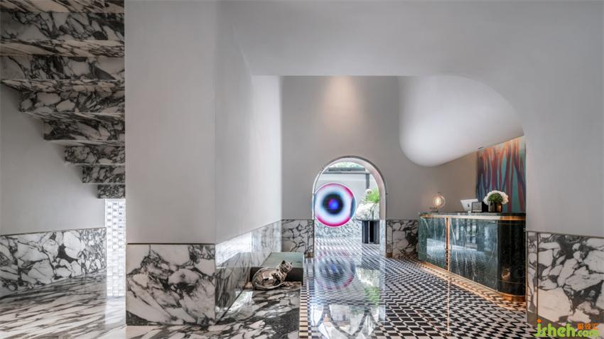 設(shè)計(jì)師黃全以Art Deco風(fēng)格重新演繹百年公寓的風(fēng)采,修繕與改建了這座黑石M+酒店,融入這個(gè)被藝術(shù)深深浸潤(rùn)的街區(qū)。因?yàn)樵O(shè)計(jì)師人數(shù)過(guò)多,我們分三批逐步參觀,在黑石這片新潮里,我們領(lǐng)略老上海的歷史魅力與設(shè)計(jì)的非凡格調(diào),享受多種材質(zhì)碰撞地視覺(jué)沖擊。