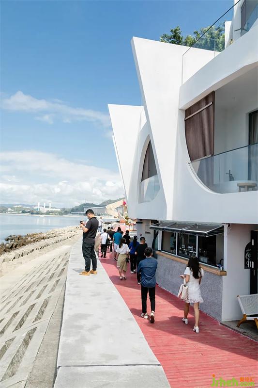 第一站來到了大鵬海灣上的楹諾小半灣。目之所及的波浪溫柔起伏,微風(fēng)帶著海鹽味輕撫過臉龐,仿佛被大海擁抱。跟著主案設(shè)計(jì)文志剛Josh的腳步,領(lǐng)略遠(yuǎn)離世俗的休閑場(chǎng)域。